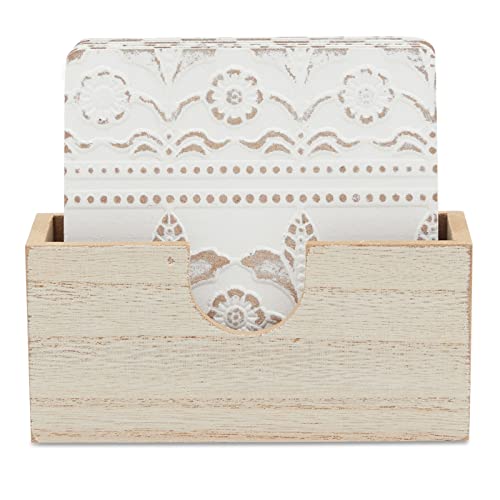 Juvale Wooden Coasters Set of 6-3.8 in, White, Square, Farmhouse Style – Coaster Holder for Coffee Table & Bar Decor – Kitchen & Living Room Decor