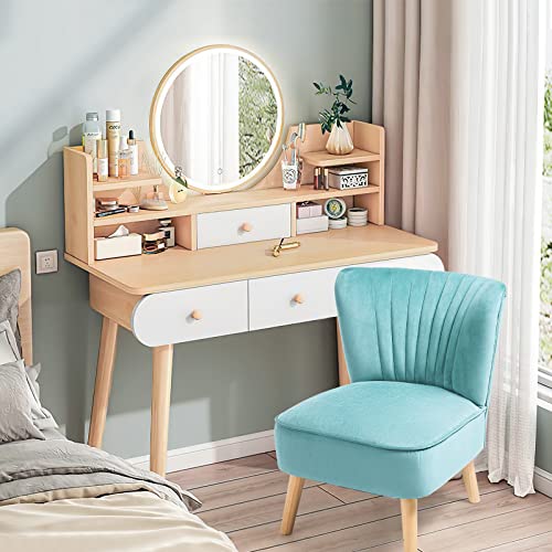 KOTEK Velvet Accent Chair, Modern Armless Accent Chair w/Solid Rubber Wood Legs, Upholstered Side Chair Club Sofa Chair Slipper Chair for Living Room Bedroom (Turquoise)
