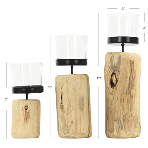 - Koyal Wholesale Driftwood Candle Holders Set of 3, Nautical Coastal Décor Gift Idea, Driftwood Log Candle Holders