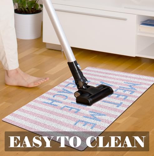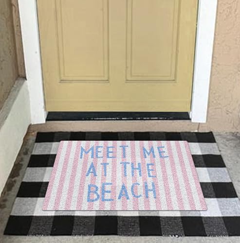 KRHFG Pink Striped Preppy Beach Door Mat, Meet Me at The Beach Doormat Bathmat for Home Bathroom Indoor Outdoor Entrance Porch, Coastal Nautical Welcome Mats for Front Door Entryway, 17×30 Inches