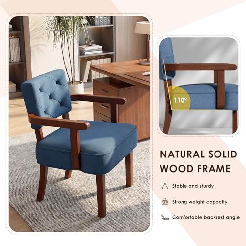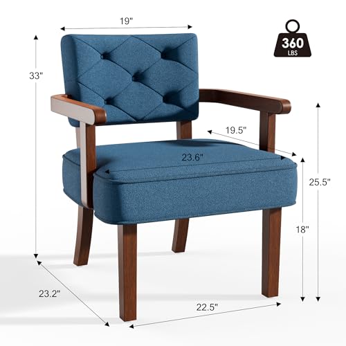 LegacyAmerhome Wood Arm Chair,Upholstered Small Accent Chairs,Butacas para Sala,Mid Century Modern Accent Chair,Tufted Back, Armrest,Cushion, Side Chair for Office,Waiting/Reading/Living Room, Blue