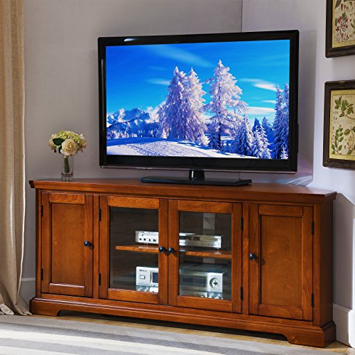 - Timeless Design: The 56" W x 20" D x 25" H Leick Home 87386 Westwood Corner TV Stand features a rich brown cherry finish with a classic raised panel design, perfect for complementing traditional decor