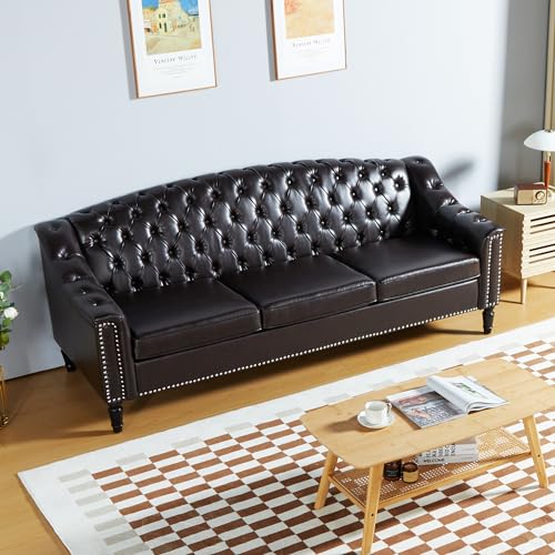 - 【Classic Chesterfield Leather Sofa】With a minimalistic yet refined structure, this leather couch mid century furniture brings out a simplistic style that emphasizes comfort and functionality. Ultra soft and comfortable chesterfield style large sofa that has classic and sophisticated look.