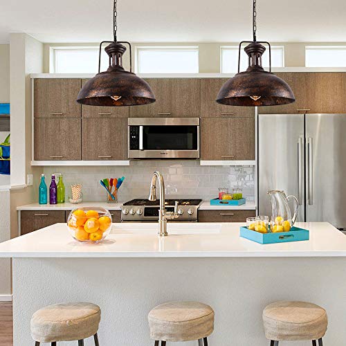 Lingkai 16.14" Farmhouse Pendant Light, Rustic Vintage Hanging Light Fixture Barn Dome Lampshade Ceiling Mount Lamp for Kitchen Island Dining Room