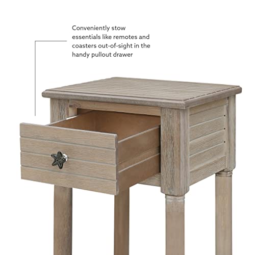 Linon Raleigh Natural Small Accent Table with Storage and Whimsical Starfish Drawer Pulls, 29.5" Tall