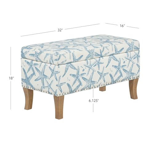 Linon Stephanie Cream and Light Blue Starfish Fully Upholstered Bench with Hidden Interior Storage