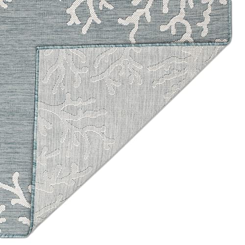 LR Home 8ft Round Outdoor Area Rug | Turkish Carpet for Patio, Deck, Backyard, Garden, Front Porch, Picnic, Courtyard and Balcony | Large Boho Farmhouse Coastal, Coral Reef Themed Rug | Blue