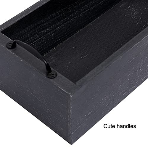 - LKMANY Black Decor Box Bathroom Toilet Tank Basket Topper With Black Handles-Farmhouse Kitchen Utensil Holder Box DIY Wood Box for Home Display