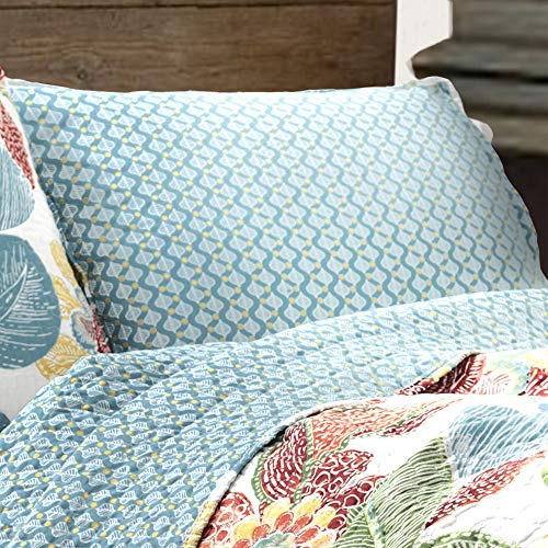 Lush Decor Layla Quilt Floral Leaf Print 3 Piece Reversible Bedding Set Full/Queen Orange & Blue