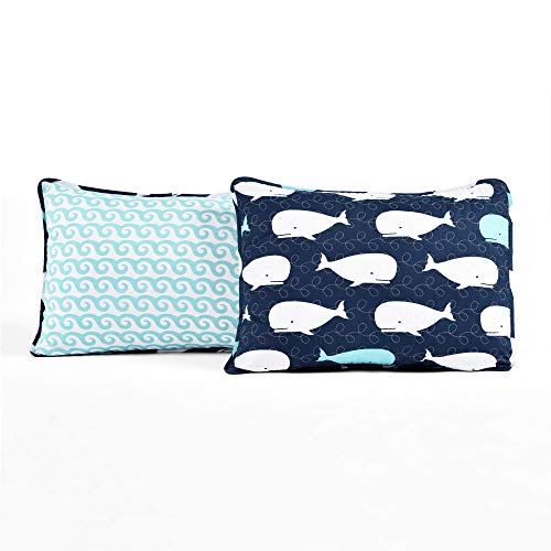 - Complete 4-Piece Set: Our twin quilt set includes a reversible quilt (86 x 68 inches), a matching sham (20 x 26 inches), and two adorable decorative pillows. The set is designed for a coordinated look and includes a square anchor and stripe pillow, as well as a charming whale-shaped pillow.