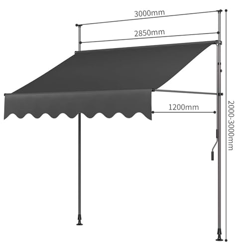 - 【Easy Adjustment】Retractable patio awning's height can be adjusted from 2000mm to 3000mm to accommodate different door and window heights. The length of the stanchion can be adjusted in 3 levels, which can be easily telescoped according to your needs. The angle of the awning can be adjusted from 0° to 90° with a simple turn of the crank to provide a variety of shading options.