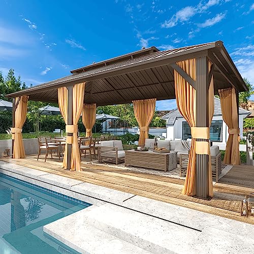TREATLIFE HOME Spacious 12' x 16' Hardtop Gazebo for Family Gatherings, Durable Aluminum and Steel Design with Curtains and Netting, Outdoor Events, Brown