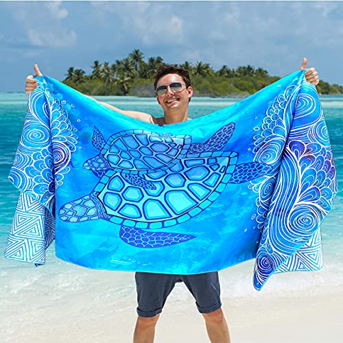 Elite Trend Microfiber Beach Towel for Adults with Bag – Extra Large 78×35 inch Lightweight Sand Free Quick Dry Towel for Travel, Swimming, Yoga, Camping (Sea Turtle)