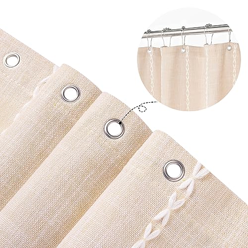 - Wrinkle Free & Ultra Thick Fabric – 310 GSM, 15% linen, 85% polyester createsfarmhouse like effect for this cream shower curtain, so that it could keep in place. The quality curtain is elegant and soft, which can deliver a rustic or country-like bathroom environment.