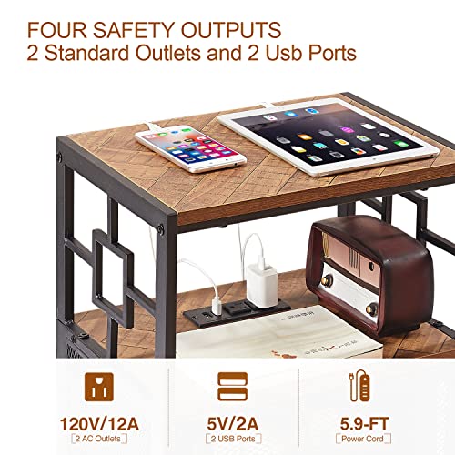 - 【End Table with Charging Station】This versatile end table comes with 2 standard sockets and 2 USB ports to easily charge your phone, ipad, desk lamp and even laptop. The long power cord allows you to move the end table freely. Easily solve the embarrassing problem of too short power cord and too few plugs.