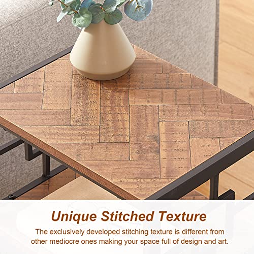 - 【Multiple Use Side Table 】The perfect combination of brown stitched texture board and black metal frame, retro and elegant. This side table is perfect for any space. You can put it next to the sofa with a cup of coffee or a snack and enjoy a wonderful afternoon tea. It's also a nice bedside table for your phone to charge and bedtime reading material.