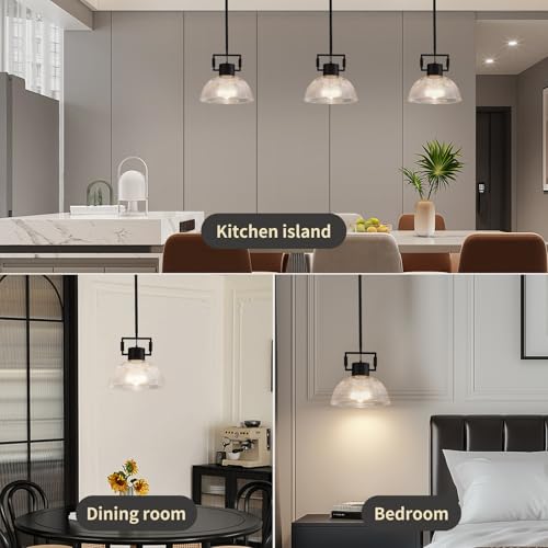 - 【Versatile for Multiple Spaces】Designed for versatility, these black pendant lights are ideal for kitchen islands, dining rooms, living rooms, bedrooms, or even coastal-themed spaces. The clear glass shade diffuses light beautifully, casting warm and inviting shadows that enhance any room’s atmosphere.