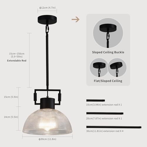 - 【Adjustable Height & Customizable Lighting】These black pendant lights come with an adjustable hanging pole, allowing you to customize the height from 5.9 inches to 59 inches. Whether your ceiling is flat or sloped, these lights can be easily installed to suit your needs. The E26 base supports various bulbs, including Edison, LED, or dimmable options, so you can create the perfect ambiance.