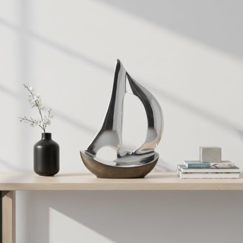 Modern Day Accents Velero Dark Hull Sailboat, Aluminum, Silver, Brown, Modern, Boat, Sculpture, Tabletop Décor, Home, Office, Water, Sail, 8" x 3" x 12" adds a Coastal Nautical Accent to Your Home