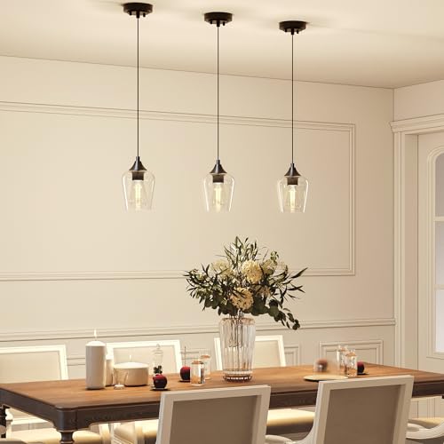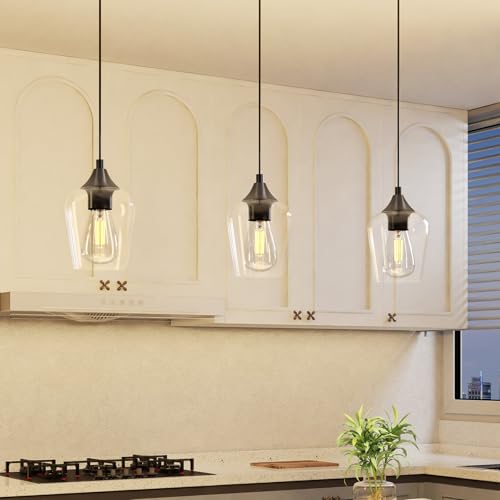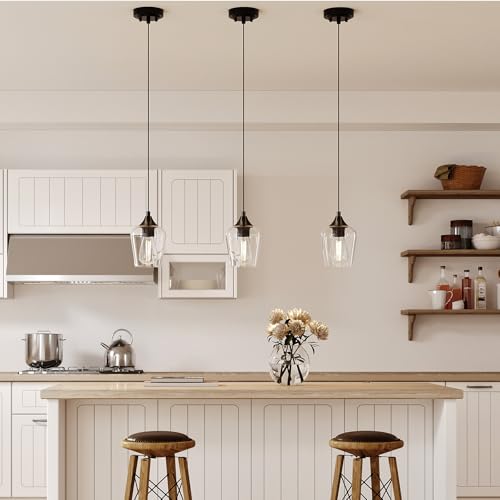 - Illuminate in Style: Bathe your kitchen island in warm welcoming illumination with Vonluce's pendant light. The elegant combination of sleek black accent and clear cylinder glass shade brings a touch of modern charm to your space