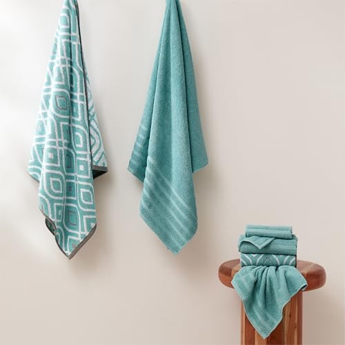 Modern Threads Classic Diamond 6-Piece 100% Cotton Towel Set – Yarn Dyed Jacquard – Includes 2 Bath Towels, 2 Hand Towels, 2 Washcloths – Absorbent, Quick Dry, Soft & Durable – Aqua
