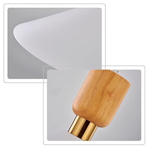 Modern White Pendant Light Fixture, Wood Accent Minimalist Style Ceiling Hanging Lamp, for Kitchen Island, Dining Room, Living Room, Coffee, Bar