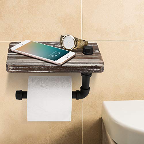 - MyGift Wall Mounted Toilet Paper Holder with Industrial Metal Pipe Bar and Solid Torched Wood Floating Display Shelf