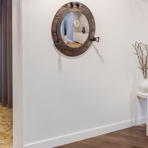 Nagina International Rustic Copper Shipwrecked Premium Nautical Porthole Mirror | Nautical Bathroom Mirrors (15 Inches, Aluminum Mirror)