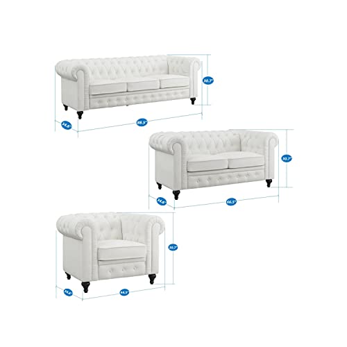 Naomi Home Emery Chesterfield Sofa Set White/PU/Sofa Set 3 Piece