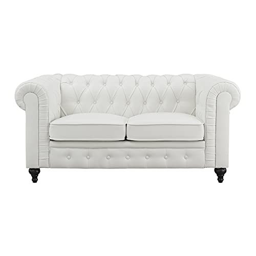 - MODERN CHESTERFIELD LOUNGE Create a lounge-worthy living room with this modernized Chesterfield sofa. Rich Grey or White leather upholstery, along with a high back and arms, the Faux Leather Sofa just perfect to sit back and read a good book or take a quick power nap.