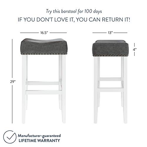 Nathan James Hylie Nailhead Wood Pub-Height Kitchen Counter Bar Stool, 29", Dark Gray/White