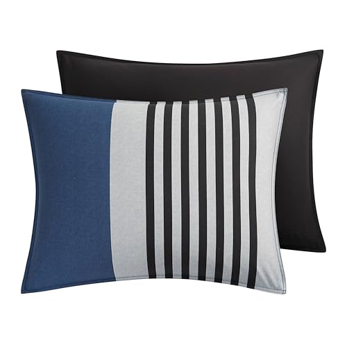 - FEATURES: Bold stripes with printed textural effect in a dark neutral pallete reversible for a versatile look. Made of durable and breathable cotton for a cozy, long lasting feel. Shams feature an easy gliding zipper closure