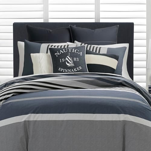 Nautica – Queen Comforter Set, Reversible Cotton Bedding with Matching Shams, Medium-Weight, Oeko-Tex Certified (Rendon Charcoal)