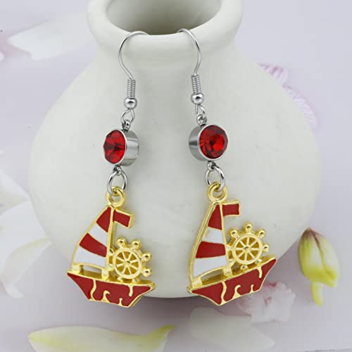 Nautical Themed Jewelry Sailboat Earrings Sailor Earrings Navy Wife Gift Sailor Gift Sailboat Jewelry Beach Gifts for Women (Sailboat Ear Red)