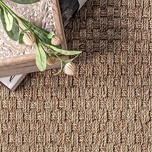 nuLOOM Hesse Checker Weave Seagrass Indoor/Outdoor Accent Rug, 3×4, Dark Grey