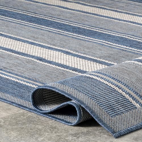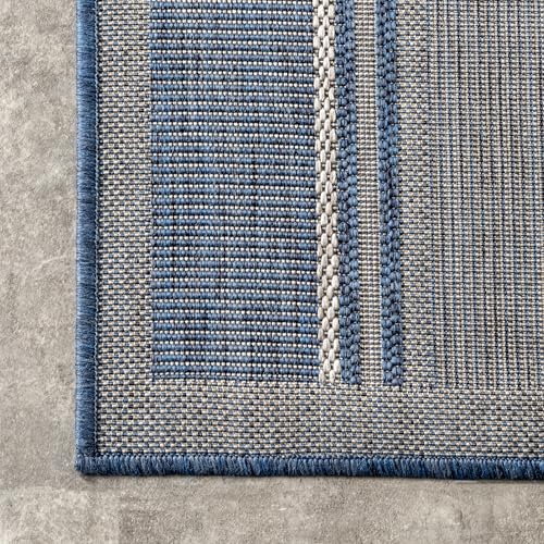 nuLOOM 2' x 8' Outdoor Performance Area Rug, Stain Resistant, Weather Resistant, High Traffic, Patio, Balcony, Outside, Piper Nautical Blue
