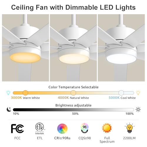 - 💡【Customizable Lighting for Every Mood】Enhance your space with the matte black ceiling fans with lights and remote, featuring a 20W LED light that offers 2400 lumens and adjustable brightness from 10% to 100%. Choose from 3 color temperatures (3000K/4000K/5000K) to set the mood for dining, relaxing, or entertaining—day or night.The flicker-free design of the light is also eye-friendly, and the memory function can save your personalized settings.