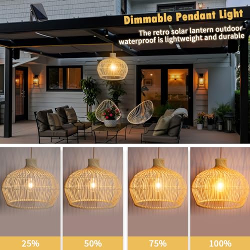 - Solar pendant lights outdoor are equipped with remote control, which can adjust the brightness to 25%/50%/75%/100% and also a timer to adjust the working time of the solar lantern from 3-8 hrs.