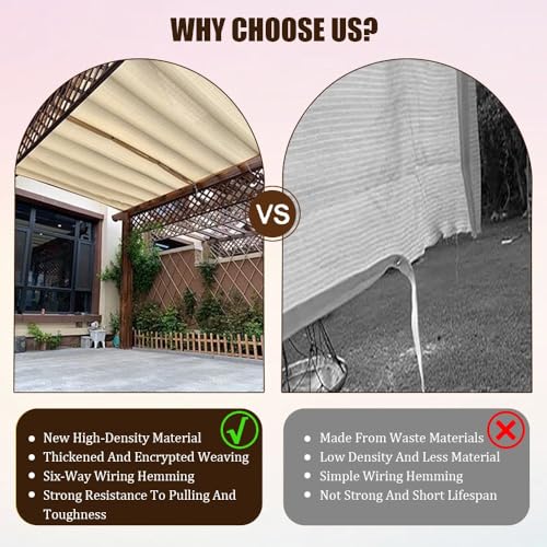 - **Premium Sunshade Fabric**: This Sunshade Cloth offers reliable UV Protection, effectively blocking harmful rays while ensuring optimal Airflow. Ideal for enhancing your Outdoor Space, it creates a Comfortable and Inviting Area in your Garden or Patio. Enjoy the outdoors without the worry of sun exposure!