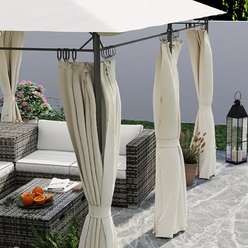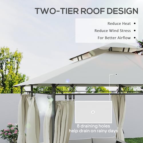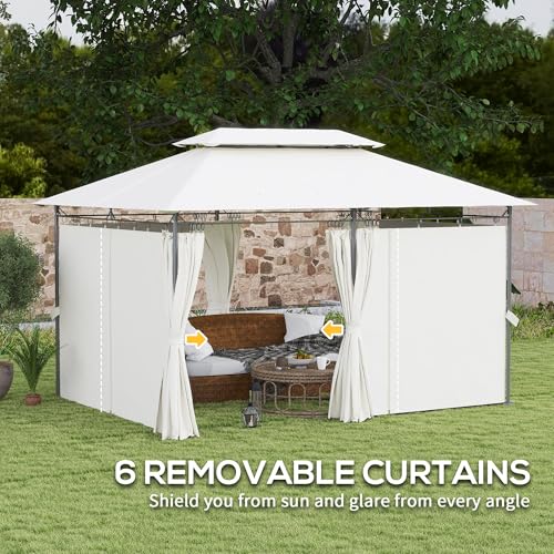 Outsunny 10' x 13' Patio Gazebo, Double Roof Outdoor Gazebo Canopy Shelter with Curtains, Solid Metal Frame for Garden, Lawn, Backyard and Deck, Cream White