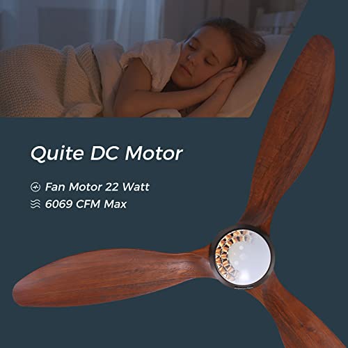 Ovlaim 52 Inch Wood Ceiling Fan, ETL Listed Quiet DC Motor Indoor Outdoor Ceiling Fans with Lights Remote Control, 3 Blade Smart Ceiling Fan for Bedroom Living Room