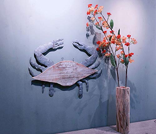 PARISLOFT 3D Wood and Galvanized Ocean Theme Wall Hanging Decor (Crab), Rustic Farmhouse Decor for Living Room or Bedroom Decorations