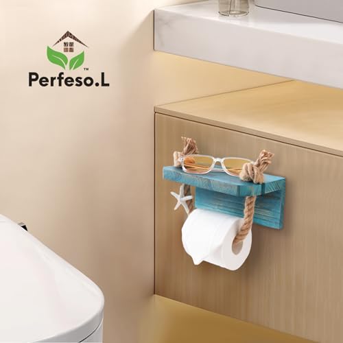 - A Creative Beach-inspired Design: Transform your space with our coastal charm sea blue toilet paper holder towel rack with shelf, infused with a vintage twist. The unique knotted rope and starfish design adds an eye-catching look, making Perfeso.L toilet paper roll holder the perfect addition to your bathroom decor!