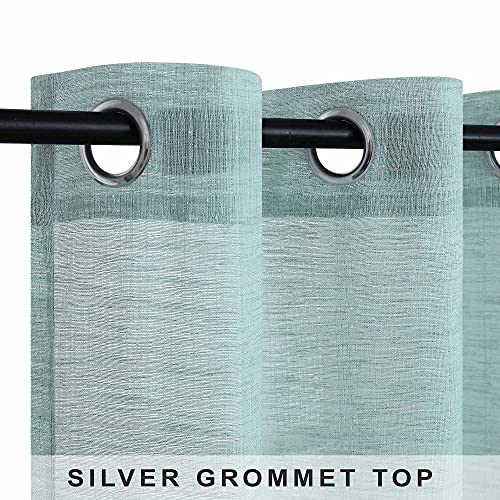 Pitalk Aqua Curtains 84 Inch Length for Living Room 2 Panel Grommet Faux Linen Summer Seafoam Green Curtain for Bedroom Kids Nursery Baby Boys Boho Coastal Beach Decor 84 Long Sea Blue Light Teal Mint