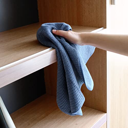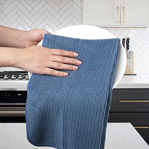 POLYTE Premium Microfiber All-Purpose Ribbed Terry Kitchen Towel, 12 Pack (Blue, Gray, Teal, 16×28 in)
