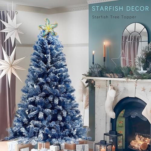 POXOHO Metal Starfish Wall Decor, Sea Life Coastal Decorations 12 inch Starfish Wall Art, Nautical Home Decoration Handing Ocean Beach Wall Art for Garden,Fence,Home,Patio,Kitchen,Bathroom,(Blue)