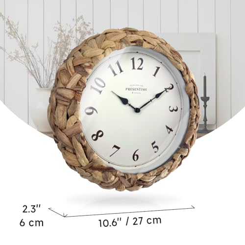 Presentime & Co Farmhouse Series, Rustic Woven Clock, 10.5 inch, Natural Woven Water Hyacinth/Sea Grass. Wall Sculpture, Wall Art and Timepiece for Home Decoration/Decoration/Farmhouse Décor.