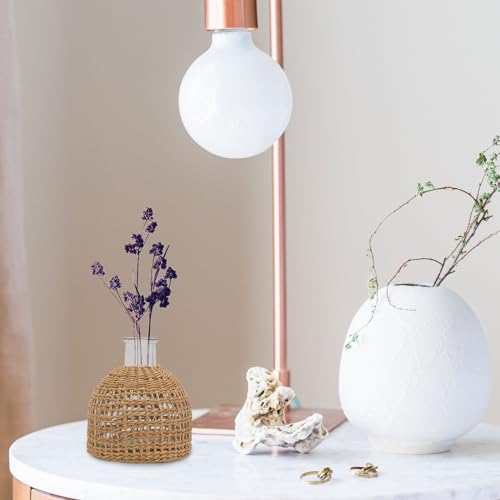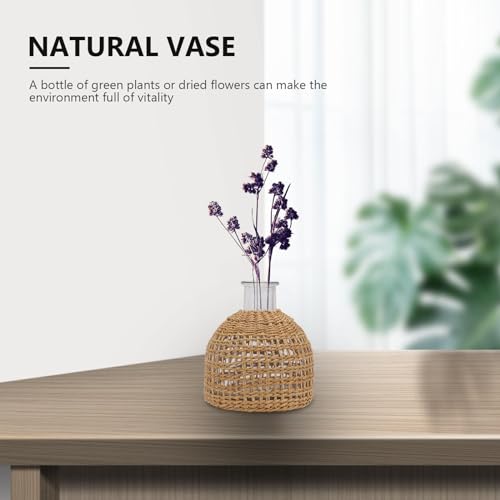 DOITOOL Glass Flower Vase with Rattan Cover, 6.29" Tall Rattan Vase, Wicker for Flowers, Boho Decor, Bud Vintage Country for Home Table Centerpiece, Farmhouse Decoration (S)