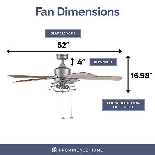 Prominence Home Marshall, 52 Inch Industrial Style LED Ceiling Fan with Light, Pull Chain, Three Mounting Options, Dual Finish Blades, Reversible Motor – Model 51458-01 (Pewter)