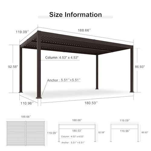 PURPLE LEAF 10' x 16' Louvered Pergola Outdoor Adjustable Louvre Shade Modern Patio Aluminum Pergola with Retractable Roof for Deck Backyard Garden Hardtop Gazebo